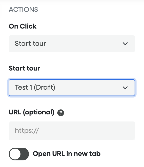 - Start Tour: Launches a specific product tour to guide users step-by-step.