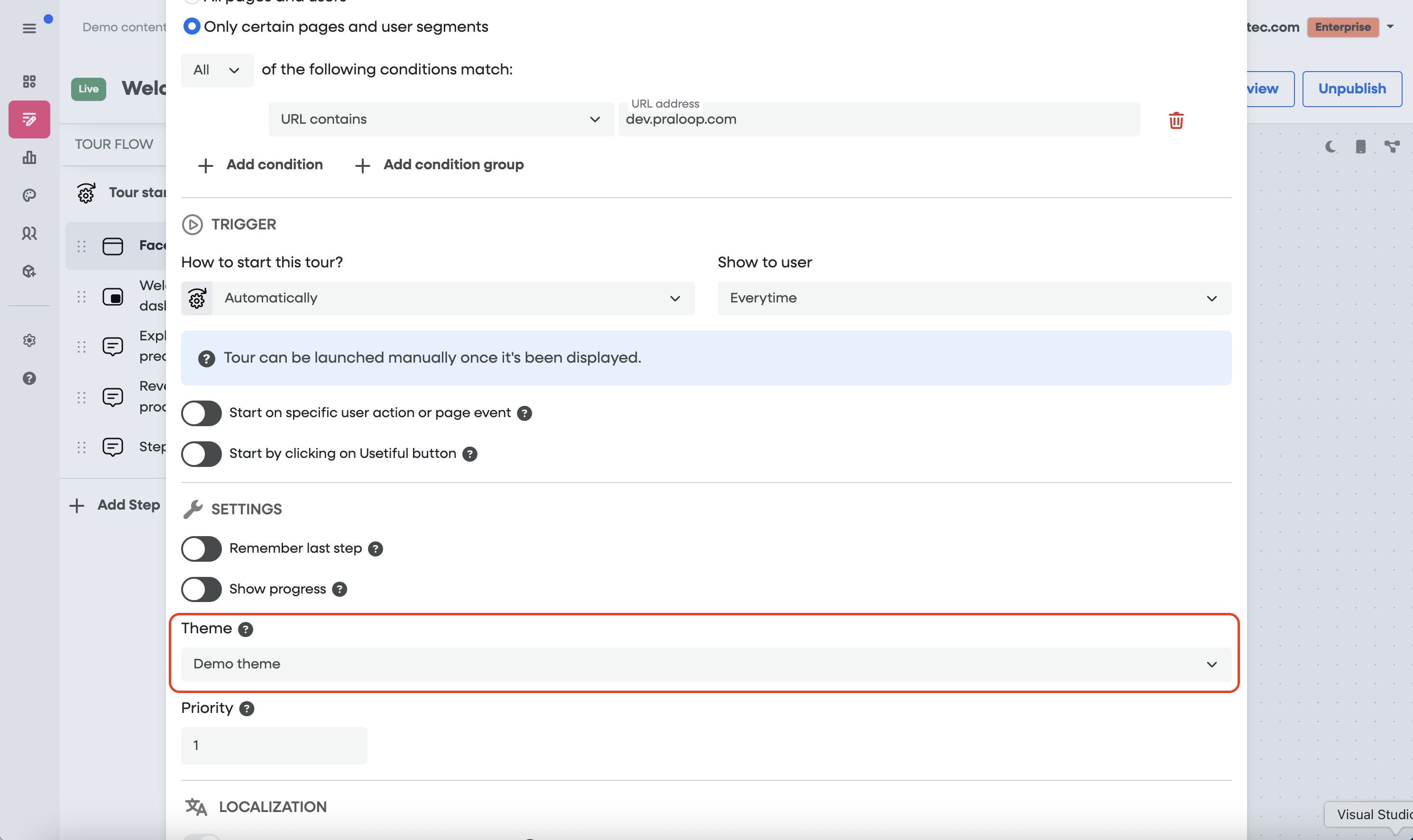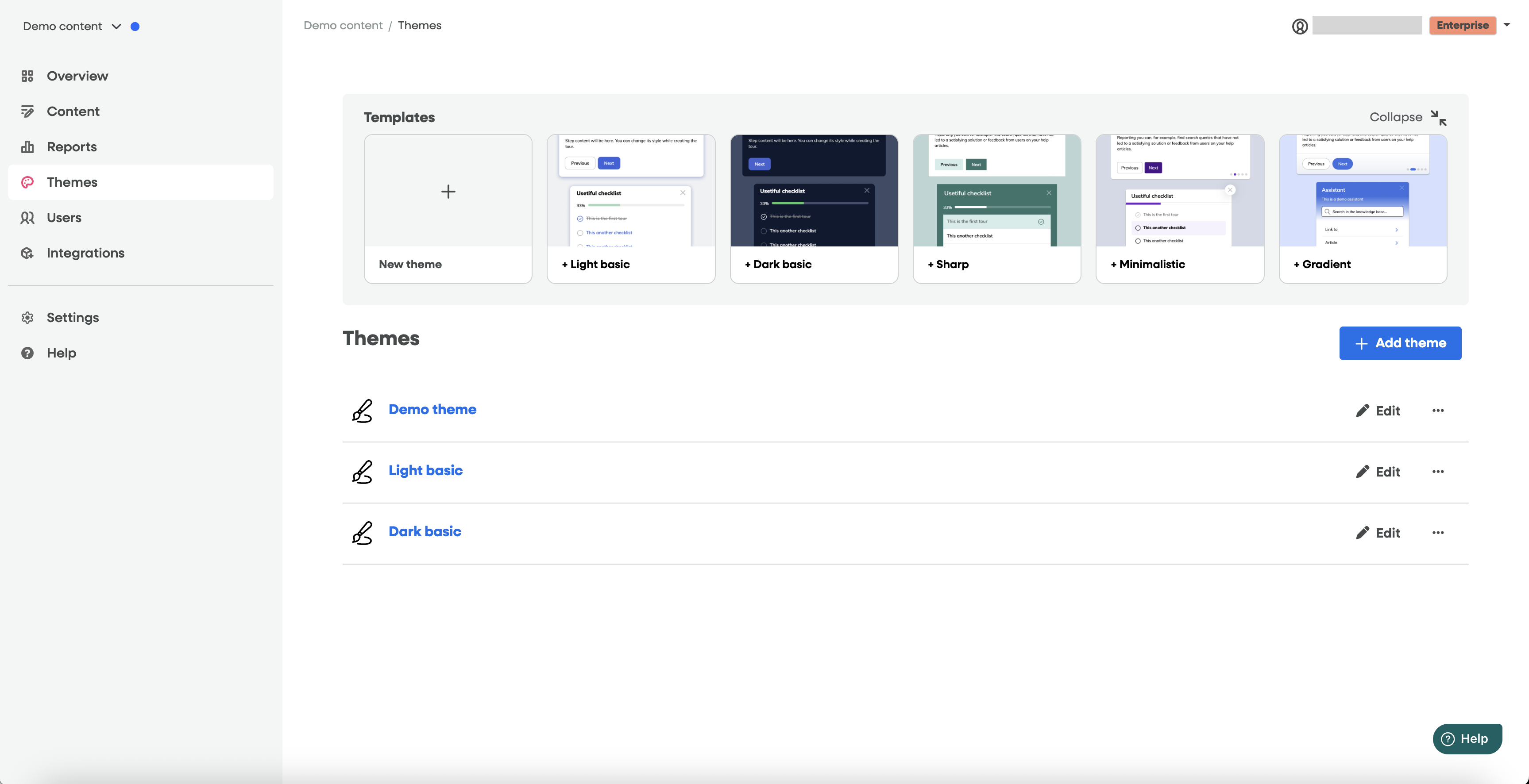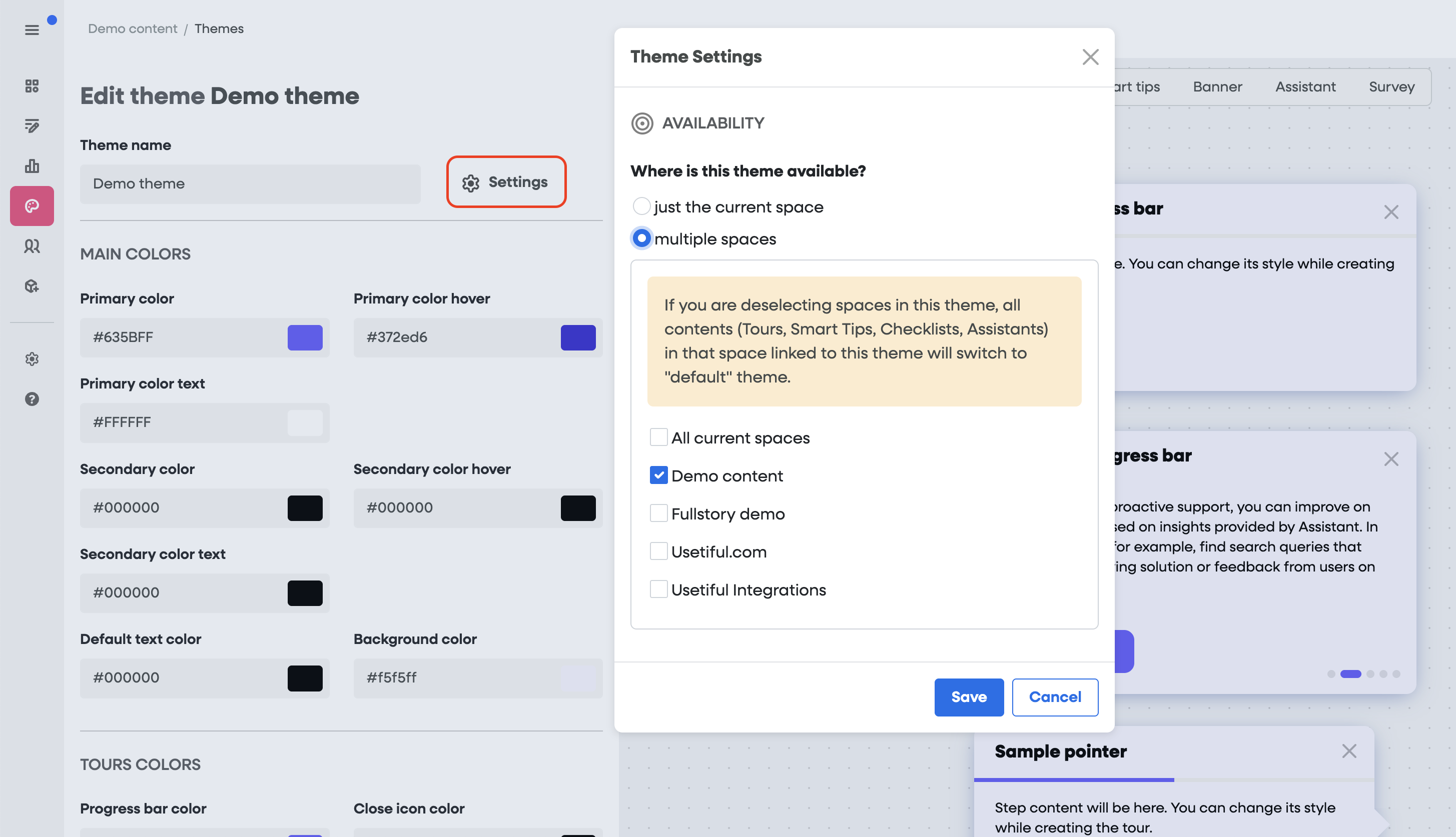 Once your theme is ready, assign it to specific content (such as tours, smart tips, checklists, and assistants) through the settings section.