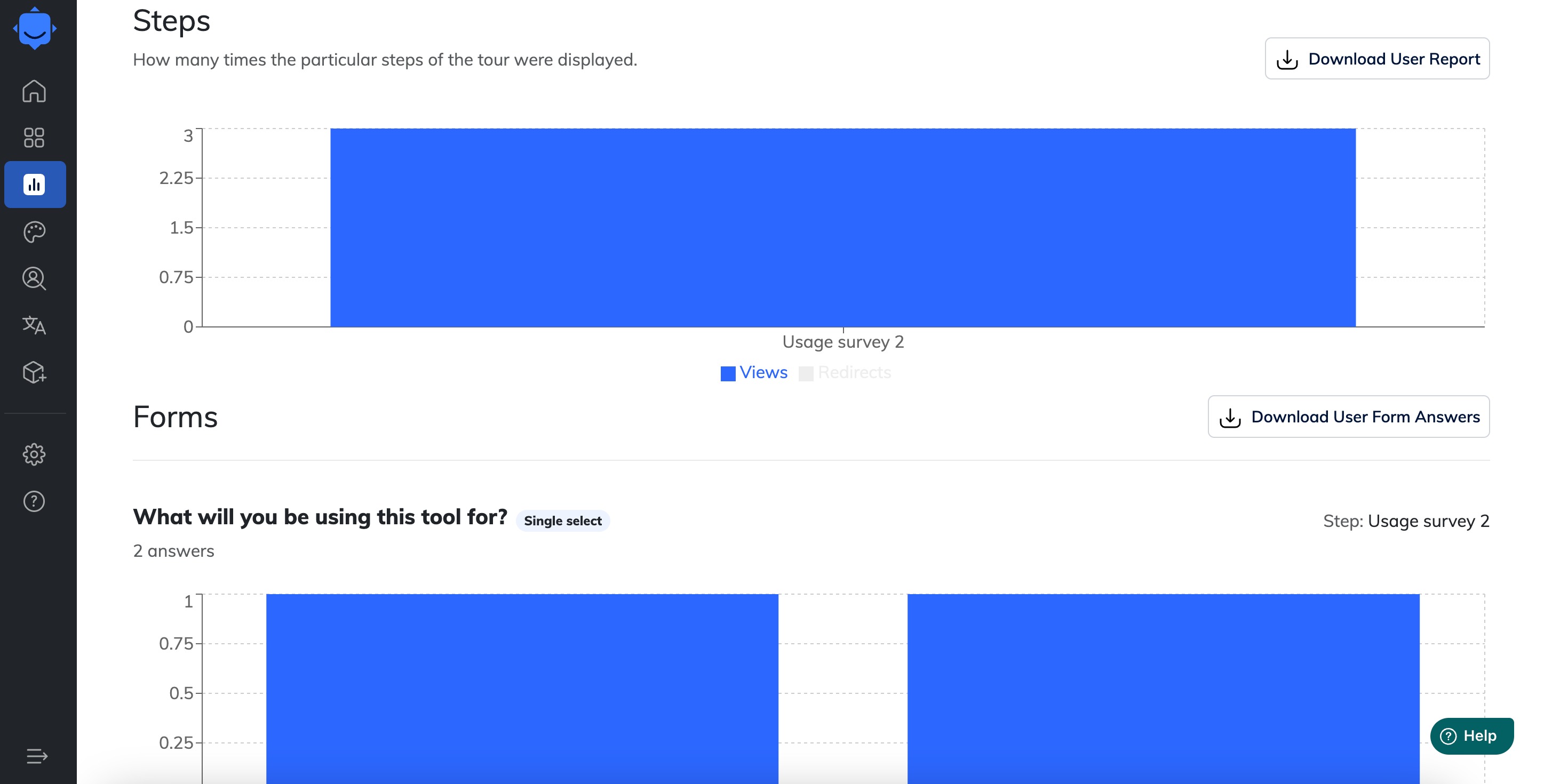 By using this feature, you can easily track user engagement and optimize your tours, forms, and surveys based on real data.